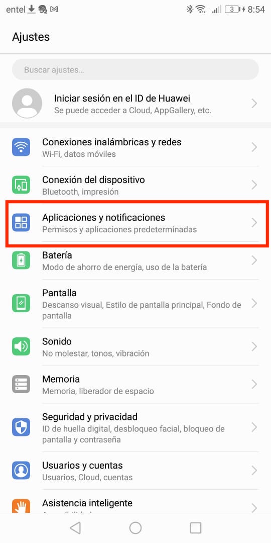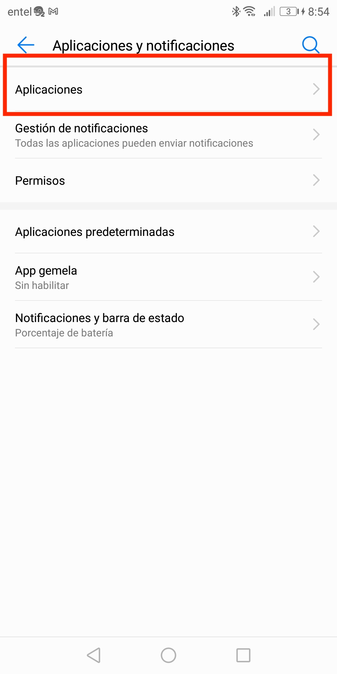 1. Abrir Ajustes, seleccionar Aplicaciones y notificaciones