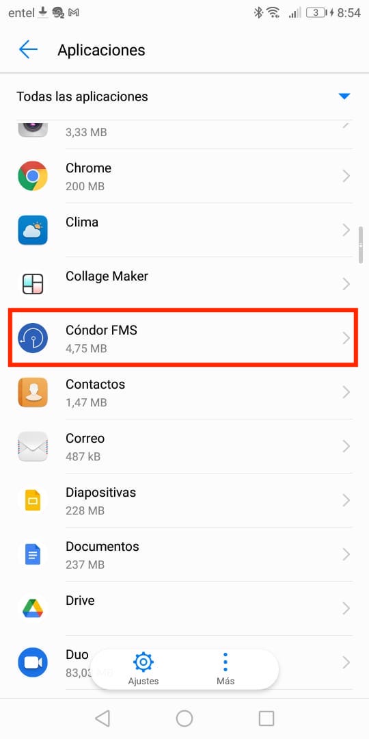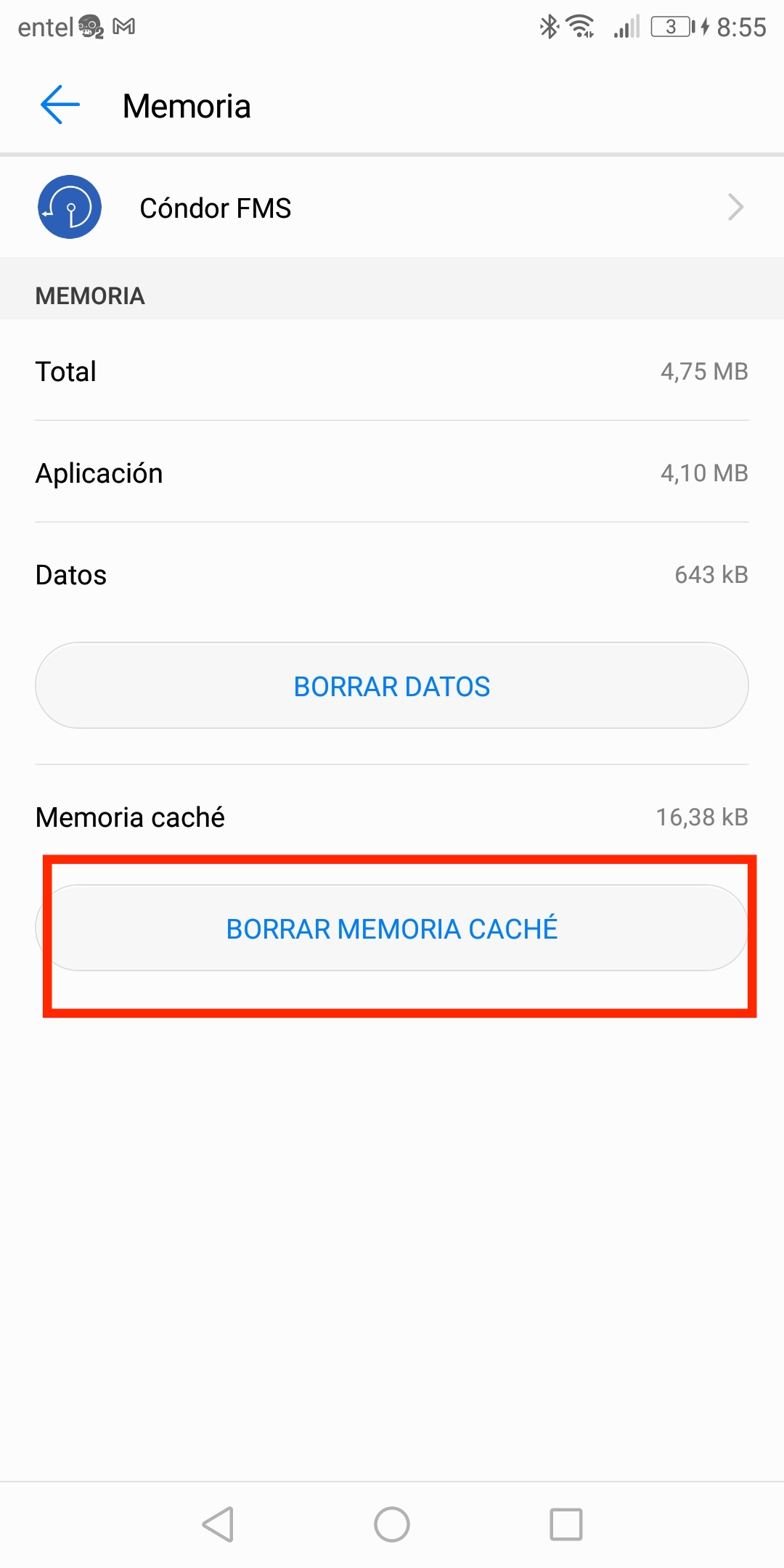 Borrar Datos de APP "Cóndor FMS" ANDROID