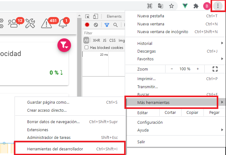 En caso que aún no funcione, se deberá eliminar el caché, para ello en Chrome presionar la tecla F12 para abrir el modo desarrollador. Si al presionar F12 no aparece la barra lateral, ir a opciones->mas herramientas -> herramientas del desarrollador